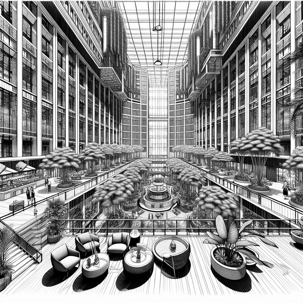 Besonders beeindruckend sind die üppig begrünten Atrien des HEADS, die mit über 1.000 Pflanzen und 15 Meter hohen Gummibäumen aus Indien eine einzigartige Atmosphäre schaffen. Diese grünen Oasen tragen maßgeblich zum Wohlbefinden der Mitarbeitenden bei und bieten das ganze Jahr über einen angenehmen Rückzugsort. Die großzügigen Lobbybereiche sind stilvoll möbliert und thematisch gestaltet, was den Besuchern ein abwechslungsreiches Erlebnis bietet.
